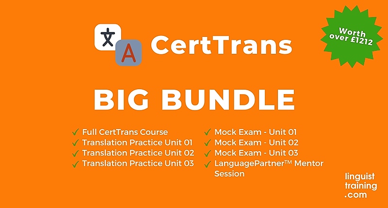 TRANSLATION PRACTICE : Save £££ with our CertTrans Translation Practice bundle. Includes Translation Practice Papers for Units 1, 2 and 3. Discounted from £237 to £199. Proofread and in-depth feedback given.