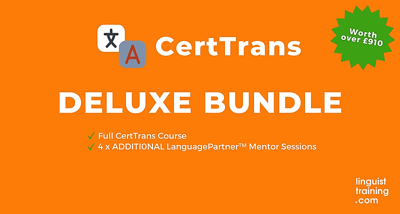 The CertTrans Course PLUS 4 additional LanguagePartnerᵀᴹ Mentor Sessions. In total 8 marked Translation Practices and 5 Mentor Sessions to discuss your work and development. Worth over £910.